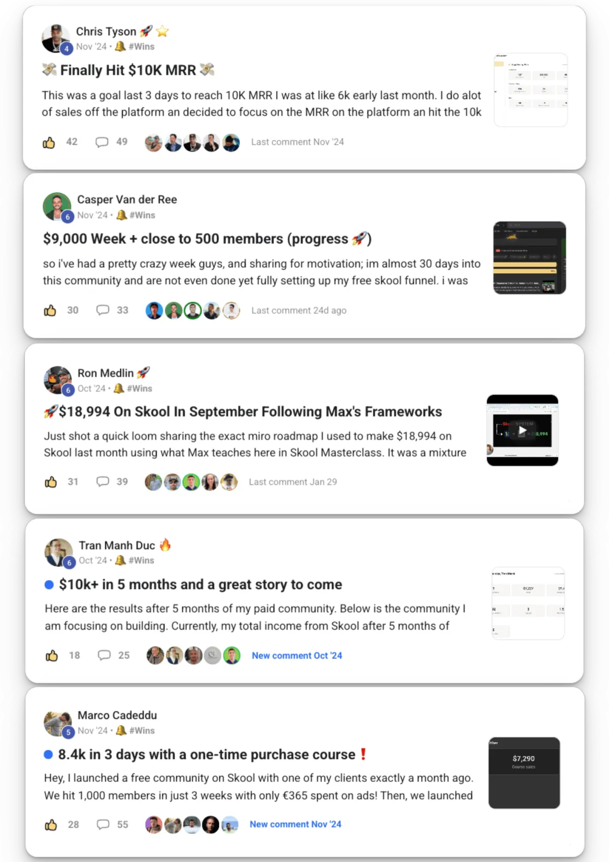 “So excited and humbled to have learned so much through Max and his team. Not only have I built a Top 50 Skool community in only 7 weeks, I’ve been able to connect with hundreds of like-minded individuals…”