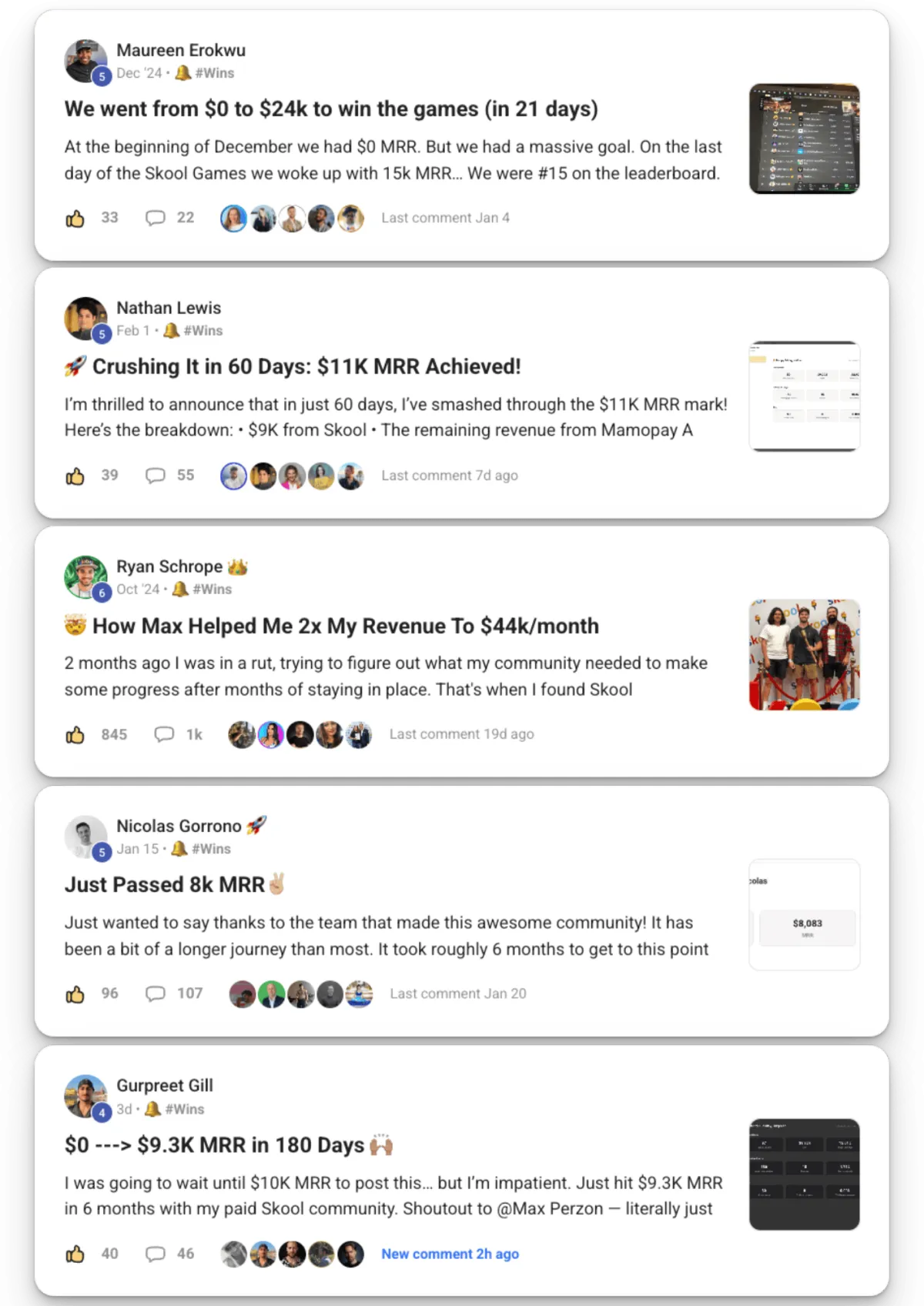 “I’m thrilled to announce that in just 60 days, I’ve smashed through the $11K MRR mark! Here’s the breakdown: $9K from Skool…”